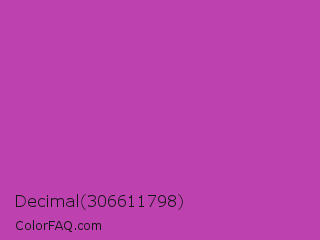 Decimal 306611798 Color is a normal magenta color and the nearest color is Byzantine #bd33a4. Hex code #be41b0 and RGB value is rgb(190,65,176). In RGB color space, this color is composed of 75% red, 25% green, 69% blue, In CMYK color space, this color is composed of 0% cyan, 66% magenta, 7% yellow , 25% black , In HSL color space, this color has a hue angle of 307° , 49% saturation and 50% lightness.