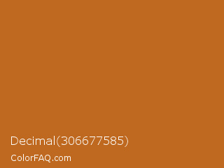 Decimal 306677585 Color is a normal orange color and the nearest color is Bourbon #ba6f1e. Hex code #be691f and RGB value is rgb(190,105,31). In RGB color space, this color is composed of 75% red, 41% green, 12% blue, In CMYK color space, this color is composed of 0% cyan, 45% magenta, 84% yellow , 25% black , In HSL color space, this color has a hue angle of 28° , 72% saturation and 43% lightness.