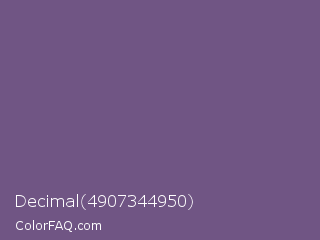 Decimal 4907344950 Color is a normal purple color and the nearest color is Dark Lavender #734f96. Hex code #705584 and RGB value is rgb(112,85,132). In RGB color space, this color is composed of 44% red, 33% green, 52% blue, In CMYK color space, this color is composed of 15% cyan, 36% magenta, 0% yellow , 48% black , In HSL color space, this color has a hue angle of 274° , 22% saturation and 43% lightness.