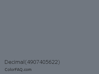 Decimal 4907405622 Color is a normal blue color and the nearest color is Pale Sky #6e7783. Hex code #707780 and RGB value is rgb(112,119,128). In RGB color space, this color is composed of 44% red, 47% green, 50% blue, In CMYK color space, this color is composed of 13% cyan, 7% magenta, 0% yellow , 50% black , In HSL color space, this color has a hue angle of 214° , 7% saturation and 47% lightness.