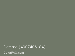 Decimal 4907406184 Color is a normal green color and the nearest color is Limed Ash #747d63. Hex code #707868 and RGB value is rgb(112,120,104). In RGB color space, this color is composed of 44% red, 47% green, 41% blue, In CMYK color space, this color is composed of 7% cyan, 0% magenta, 13% yellow , 53% black , In HSL color space, this color has a hue angle of 90° , 7% saturation and 44% lightness.