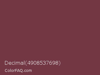 Decimal 4908537698 Color is a normal red color and the nearest color is Catawba #703642. Hex code #723742 and RGB value is rgb(114,55,66). In RGB color space, this color is composed of 45% red, 22% green, 26% blue, In CMYK color space, this color is composed of 0% cyan, 52% magenta, 42% yellow , 55% black , In HSL color space, this color has a hue angle of 349° , 35% saturation and 33% lightness.