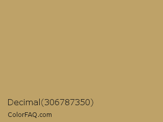 Decimal 306787350 Color is a normal orange color and the nearest color is Desert Camel #c19a6b. Hex code #bea268 and RGB value is rgb(190,162,104). In RGB color space, this color is composed of 75% red, 64% green, 41% blue, In CMYK color space, this color is composed of 0% cyan, 15% magenta, 45% yellow , 25% black , In HSL color space, this color has a hue angle of 40° , 40% saturation and 58% lightness.