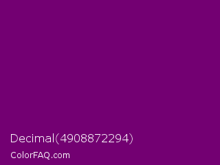 Decimal 4908872294 Color is a dark magenta color and the nearest color is Patriarch #800080. Hex code #730072 and RGB value is rgb(115,0,114). In RGB color space, this color is composed of 45% red, 0% green, 45% blue, In CMYK color space, this color is composed of 0% cyan, 100% magenta, 1% yellow , 55% black , In HSL color space, this color has a hue angle of 301° , 100% saturation and 23% lightness.