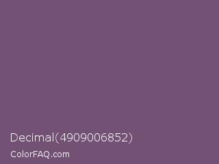Decimal 4909006852 Color is a normal magenta color and the nearest color is Salt Box #685e6e. Hex code #735174 and RGB value is rgb(115,81,116). In RGB color space, this color is composed of 45% red, 32% green, 45% blue, In CMYK color space, this color is composed of 1% cyan, 30% magenta, 0% yellow , 55% black , In HSL color space, this color has a hue angle of 298° , 18% saturation and 39% lightness.