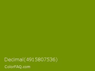 Decimal 4915807536 Color is a dark lime color and the nearest color is Limeade #6f9d02. Hex code #739202 and RGB value is rgb(115,146,2). In RGB color space, this color is composed of 45% red, 57% green, 1% blue, In CMYK color space, this color is composed of 21% cyan, 0% magenta, 99% yellow , 43% black , In HSL color space, this color has a hue angle of 73° , 97% saturation and 29% lightness.
