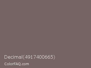Decimal 4917400665 Color is a normal red color and the nearest color is Flint #6f6a61. Hex code #766463 and RGB value is rgb(118,100,99). In RGB color space, this color is composed of 46% red, 39% green, 39% blue, In CMYK color space, this color is composed of 0% cyan, 15% magenta, 16% yellow , 54% black , In HSL color space, this color has a hue angle of 3° , 9% saturation and 43% lightness.