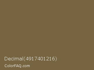 Decimal 4917401216 Color is a normal orange color and the nearest color is Yellow Metal #716338. Hex code #766540 and RGB value is rgb(118,101,64). In RGB color space, this color is composed of 46% red, 40% green, 25% blue, In CMYK color space, this color is composed of 0% cyan, 14% magenta, 46% yellow , 54% black , In HSL color space, this color has a hue angle of 41° , 30% saturation and 36% lightness.