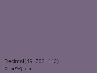 Decimal 4917821440 Color is a normal purple color and the nearest color is Old Lavender #796878. Hex code #766680 and RGB value is rgb(118,102,128). In RGB color space, this color is composed of 46% red, 40% green, 50% blue, In CMYK color space, this color is composed of 8% cyan, 20% magenta, 0% yellow , 50% black , In HSL color space, this color has a hue angle of 277° , 11% saturation and 45% lightness.