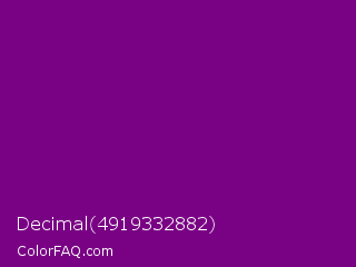 Decimal 4919332882 Color is a dark magenta color and the nearest color is Patriarch #800080. Hex code #790284 and RGB value is rgb(121,2,132). In RGB color space, this color is composed of 47% red, 1% green, 52% blue, In CMYK color space, this color is composed of 8% cyan, 98% magenta, 0% yellow , 48% black , In HSL color space, this color has a hue angle of 295° , 97% saturation and 26% lightness.