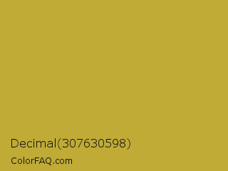 Decimal 307630598 Color is a normal yellow color and the nearest color is Satin Sheen Gold #cba135. Hex code #bfab36 and RGB value is rgb(191,171,54). In RGB color space, this color is composed of 75% red, 67% green, 21% blue, In CMYK color space, this color is composed of 0% cyan, 10% magenta, 72% yellow , 25% black , In HSL color space, this color has a hue angle of 51° , 56% saturation and 48% lightness.