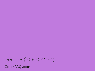 Decimal 308364134 Color is a light purple color and the nearest color is Lavender #b57edc. Hex code #c07ade and RGB value is rgb(192,122,222). In RGB color space, this color is composed of 75% red, 48% green, 87% blue, In CMYK color space, this color is composed of 14% cyan, 45% magenta, 0% yellow , 13% black , In HSL color space, this color has a hue angle of 282° , 60% saturation and 67% lightness.