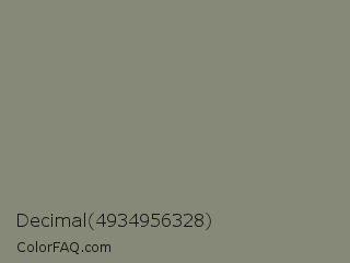 Decimal 4934956328 Color is a normal lime color and the nearest color is Bitter #868974. Hex code #868978 and RGB value is rgb(134,137,120). In RGB color space, this color is composed of 53% red, 54% green, 47% blue, In CMYK color space, this color is composed of 2% cyan, 0% magenta, 12% yellow , 46% black , In HSL color space, this color has a hue angle of 71° , 7% saturation and 50% lightness.