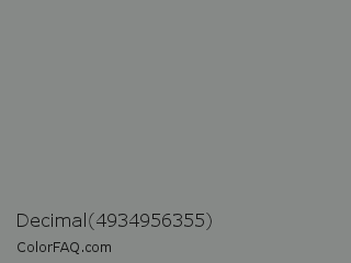 Decimal 4934956355 Color is a normal green color and the nearest color is Gunsmoke #828685. Hex code #868987 and RGB value is rgb(134,137,135). In RGB color space, this color is composed of 53% red, 54% green, 53% blue, In CMYK color space, this color is composed of 2% cyan, 0% magenta, 1% yellow , 46% black , In HSL color space, this color has a hue angle of 140° , 1% saturation and 53% lightness.