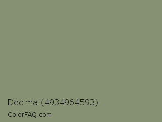 Decimal 4934964593 Color is a normal green color and the nearest color is Battleship Gray #828f72. Hex code #869173 and RGB value is rgb(134,145,115). In RGB color space, this color is composed of 53% red, 57% green, 45% blue, In CMYK color space, this color is composed of 8% cyan, 0% magenta, 21% yellow , 43% black , In HSL color space, this color has a hue angle of 82° , 12% saturation and 51% lightness.