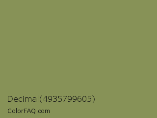 Decimal 4935799605 Color is a normal lime color and the nearest color is Moss Green #8a9a5b. Hex code #879257 and RGB value is rgb(135,146,87). In RGB color space, this color is composed of 53% red, 57% green, 34% blue, In CMYK color space, this color is composed of 8% cyan, 0% magenta, 40% yellow , 43% black , In HSL color space, this color has a hue angle of 71° , 25% saturation and 46% lightness.