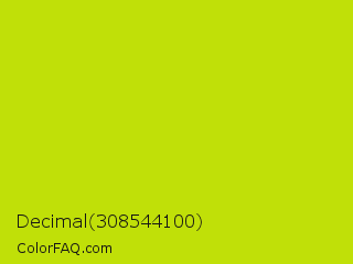 Decimal 308544100 Color is a normal yellow color and the nearest color is Fuego #bede0d. Hex code #c0e008 and RGB value is rgb(192,224,8). In RGB color space, this color is composed of 75% red, 88% green, 3% blue, In CMYK color space, this color is composed of 14% cyan, 0% magenta, 96% yellow , 12% black , In HSL color space, this color has a hue angle of 69° , 93% saturation and 45% lightness.