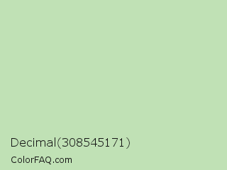 Decimal 308545171 Color is a light green color and the nearest color is Pixie Green #c0d8b6. Hex code #c0e1b5 and RGB value is rgb(192,225,181). In RGB color space, this color is composed of 75% red, 88% green, 71% blue, In CMYK color space, this color is composed of 15% cyan, 0% magenta, 20% yellow , 12% black , In HSL color space, this color has a hue angle of 105° , 42% saturation and 80% lightness.