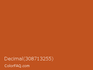 Decimal 308713255 Color is a normal orange color and the nearest color is Orange Roughy #c45719. Hex code #c1531f and RGB value is rgb(193,83,31). In RGB color space, this color is composed of 76% red, 33% green, 12% blue, In CMYK color space, this color is composed of 0% cyan, 57% magenta, 84% yellow , 24% black , In HSL color space, this color has a hue angle of 19° , 72% saturation and 44% lightness.