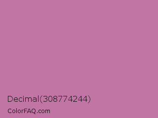 Decimal 308774244 Color is a light magenta color and the nearest color is Pearly Purple #b768a2. Hex code #c175a4 and RGB value is rgb(193,117,164). In RGB color space, this color is composed of 76% red, 46% green, 64% blue, In CMYK color space, this color is composed of 0% cyan, 39% magenta, 15% yellow , 24% black , In HSL color space, this color has a hue angle of 323° , 38% saturation and 61% lightness.