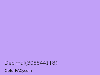 Decimal 308844118 Color is a light violet color and the nearest color is Pale Violet #cc99ff. Hex code #c1a0f8 and RGB value is rgb(193,160,248). In RGB color space, this color is composed of 76% red, 63% green, 97% blue, In CMYK color space, this color is composed of 22% cyan, 35% magenta, 0% yellow , 3% black , In HSL color space, this color has a hue angle of 263° , 86% saturation and 80% lightness.