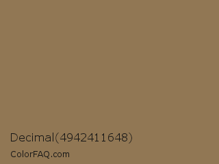 Decimal 4942411648 Color is a normal orange color and the nearest color is Pale Brown #987654. Hex code #917754 and RGB value is rgb(145,119,84). In RGB color space, this color is composed of 57% red, 47% green, 33% blue, In CMYK color space, this color is composed of 0% cyan, 18% magenta, 42% yellow , 43% black , In HSL color space, this color has a hue angle of 34° , 27% saturation and 45% lightness.