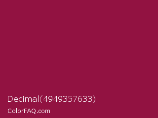 Decimal 4949357633 Color is a normal rose color and the nearest color is Disco #871550. Hex code #921241 and RGB value is rgb(146,18,65). In RGB color space, this color is composed of 57% red, 7% green, 25% blue, In CMYK color space, this color is composed of 0% cyan, 88% magenta, 55% yellow , 43% black , In HSL color space, this color has a hue angle of 338° , 78% saturation and 32% lightness.