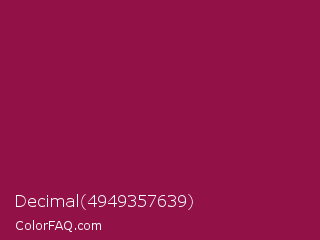 Decimal 4949357639 Color is a normal rose color and the nearest color is Disco #871550. Hex code #921247 and RGB value is rgb(146,18,71). In RGB color space, this color is composed of 57% red, 7% green, 28% blue, In CMYK color space, this color is composed of 0% cyan, 88% magenta, 51% yellow , 43% black , In HSL color space, this color has a hue angle of 335° , 78% saturation and 32% lightness.