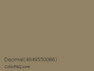 Decimal 4949550086 Color is a normal orange color and the nearest color is Clay Creek #8a8360. Hex code #928366 and RGB value is rgb(146,131,102). In RGB color space, this color is composed of 57% red, 51% green, 40% blue, In CMYK color space, this color is composed of 0% cyan, 10% magenta, 30% yellow , 43% black , In HSL color space, this color has a hue angle of 40° , 18% saturation and 49% lightness.
