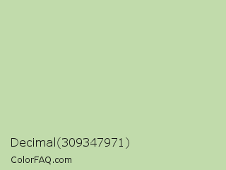 Decimal 309347971 Color is a light green color and the nearest color is Sprout #c1d7b0. Hex code #c1dbab and RGB value is rgb(193,219,171). In RGB color space, this color is composed of 76% red, 86% green, 67% blue, In CMYK color space, this color is composed of 12% cyan, 0% magenta, 22% yellow , 14% black , In HSL color space, this color has a hue angle of 93° , 40% saturation and 76% lightness.