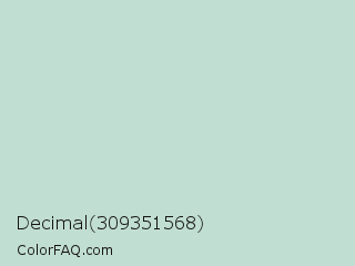 Decimal 309351568 Color is a very light green color and the nearest color is Sea Mist #c5dbca. Hex code #c1ded2 and RGB value is rgb(193,222,210). In RGB color space, this color is composed of 76% red, 87% green, 82% blue, In CMYK color space, this color is composed of 13% cyan, 0% magenta, 5% yellow , 13% black , In HSL color space, this color has a hue angle of 155° , 31% saturation and 81% lightness.
