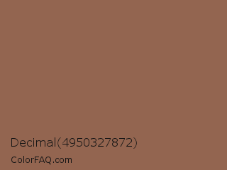 Decimal 4950327872 Color is a normal orange color and the nearest color is Spicy Mix #8b5f4d. Hex code #936550 and RGB value is rgb(147,101,80). In RGB color space, this color is composed of 58% red, 40% green, 31% blue, In CMYK color space, this color is composed of 0% cyan, 31% magenta, 46% yellow , 42% black , In HSL color space, this color has a hue angle of 19° , 30% saturation and 45% lightness.