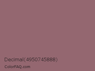 Decimal 4950745888 Color is a normal red color and the nearest color is Mauve Taupe #915f6d. Hex code #946770 and RGB value is rgb(148,103,112). In RGB color space, this color is composed of 58% red, 40% green, 44% blue, In CMYK color space, this color is composed of 0% cyan, 30% magenta, 24% yellow , 42% black , In HSL color space, this color has a hue angle of 348° , 18% saturation and 49% lightness.