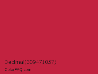 Decimal 309471057 Color is a normal red color and the nearest color is Cardinal #c41e3a. Hex code #c2223f and RGB value is rgb(194,34,63). In RGB color space, this color is composed of 76% red, 13% green, 25% blue, In CMYK color space, this color is composed of 0% cyan, 82% magenta, 68% yellow , 24% black , In HSL color space, this color has a hue angle of 349° , 70% saturation and 45% lightness.
