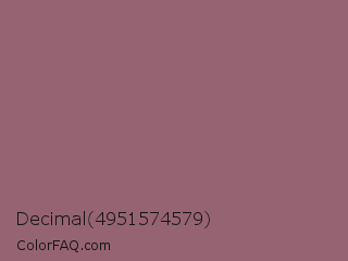 Decimal 4951574579 Color is a normal rose color and the nearest color is Mauve Taupe #915f6d. Hex code #956371 and RGB value is rgb(149,99,113). In RGB color space, this color is composed of 58% red, 39% green, 44% blue, In CMYK color space, this color is composed of 0% cyan, 34% magenta, 24% yellow , 42% black , In HSL color space, this color has a hue angle of 343° , 20% saturation and 49% lightness.