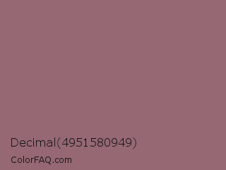 Decimal 4951580949 Color is a normal red color and the nearest color is Opium #8e6f70. Hex code #956873 and RGB value is rgb(149,104,115). In RGB color space, this color is composed of 58% red, 41% green, 45% blue, In CMYK color space, this color is composed of 0% cyan, 30% magenta, 23% yellow , 42% black , In HSL color space, this color has a hue angle of 345° , 18% saturation and 50% lightness.