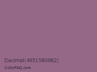 Decimal 4951580982 Color is a normal magenta color and the nearest color is Strikemaster #956387. Hex code #956888 and RGB value is rgb(149,104,136). In RGB color space, this color is composed of 58% red, 41% green, 53% blue, In CMYK color space, this color is composed of 0% cyan, 30% magenta, 9% yellow , 42% black , In HSL color space, this color has a hue angle of 317° , 18% saturation and 50% lightness.