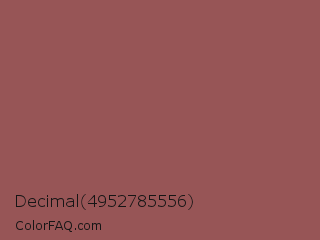 Decimal 4952785556 Color is a normal red color and the nearest color is Rose Taupe #905d5d. Hex code #975556 and RGB value is rgb(151,85,86). In RGB color space, this color is composed of 59% red, 33% green, 34% blue, In CMYK color space, this color is composed of 0% cyan, 44% magenta, 43% yellow , 41% black , In HSL color space, this color has a hue angle of 359° , 28% saturation and 46% lightness.