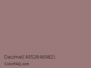 Decimal 4952846982 Color is a normal red color and the nearest color is Bazaar #98777b. Hex code #977876 and RGB value is rgb(151,120,118). In RGB color space, this color is composed of 59% red, 47% green, 46% blue, In CMYK color space, this color is composed of 0% cyan, 21% magenta, 22% yellow , 41% black , In HSL color space, this color has a hue angle of 4° , 14% saturation and 53% lightness.