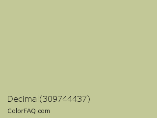 Decimal 309744437 Color is a light yellow color and the nearest color is Pine Glade #c7cd90. Hex code #c2c897 and RGB value is rgb(194,200,151). In RGB color space, this color is composed of 76% red, 78% green, 59% blue, In CMYK color space, this color is composed of 3% cyan, 0% magenta, 25% yellow , 22% black , In HSL color space, this color has a hue angle of 67° , 31% saturation and 69% lightness.