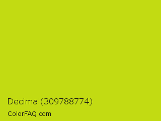 Decimal 309788774 Color is a normal yellow color and the nearest color is Fuego #bede0d. Hex code #c2db12 and RGB value is rgb(194,219,18). In RGB color space, this color is composed of 76% red, 86% green, 7% blue, In CMYK color space, this color is composed of 11% cyan, 0% magenta, 92% yellow , 14% black , In HSL color space, this color has a hue angle of 67° , 85% saturation and 46% lightness.