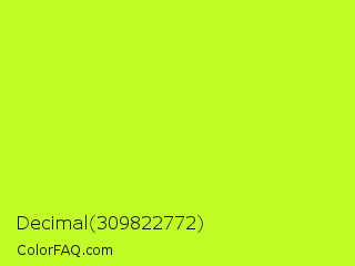 Decimal 309822772 Color is a normal lime color and the nearest color is Arctic Lime #d0ff14. Hex code #c2fc26 and RGB value is rgb(194,252,38). In RGB color space, this color is composed of 76% red, 99% green, 15% blue, In CMYK color space, this color is composed of 23% cyan, 0% magenta, 85% yellow , 1% black , In HSL color space, this color has a hue angle of 76° , 97% saturation and 57% lightness.