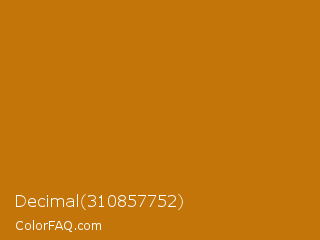 Decimal 310857752 Color is a normal orange color and the nearest color is Indochine #c26b03. Hex code #c4750a and RGB value is rgb(196,117,10). In RGB color space, this color is composed of 77% red, 46% green, 4% blue, In CMYK color space, this color is composed of 0% cyan, 40% magenta, 95% yellow , 23% black , In HSL color space, this color has a hue angle of 35° , 90% saturation and 40% lightness.