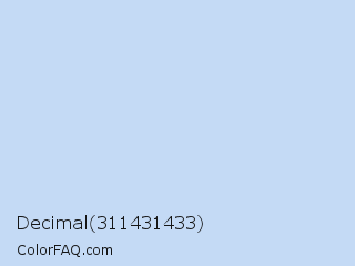 Decimal 311431433 Color is a very light blue color and the nearest color is Tropical Blue #c3ddf9. Hex code #c4daf5 and RGB value is rgb(196,218,245). In RGB color space, this color is composed of 77% red, 85% green, 96% blue, In CMYK color space, this color is composed of 20% cyan, 11% magenta, 0% yellow , 4% black , In HSL color space, this color has a hue angle of 213° , 71% saturation and 86% lightness.