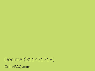 Decimal 311431718 Color is a light lime color and the nearest color is Yellow Green #c5e17a. Hex code #c4db6a and RGB value is rgb(196,219,106). In RGB color space, this color is composed of 77% red, 86% green, 42% blue, In CMYK color space, this color is composed of 11% cyan, 0% magenta, 52% yellow , 14% black , In HSL color space, this color has a hue angle of 72° , 61% saturation and 64% lightness.