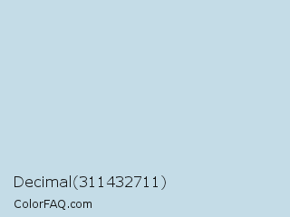 Decimal 311432711 Color is a very light blue color and the nearest color is Botticelli #c7dde5. Hex code #c4dce7 and RGB value is rgb(196,220,231). In RGB color space, this color is composed of 77% red, 86% green, 91% blue, In CMYK color space, this color is composed of 15% cyan, 5% magenta, 0% yellow , 9% black , In HSL color space, this color has a hue angle of 199° , 42% saturation and 84% lightness.