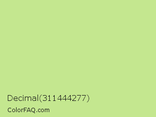 Decimal 311444277 Color is a light green color and the nearest color is Medium Spring Bud #c9dc87. Hex code #c4e78f and RGB value is rgb(196,231,143). In RGB color space, this color is composed of 77% red, 91% green, 56% blue, In CMYK color space, this color is composed of 15% cyan, 0% magenta, 38% yellow , 9% black , In HSL color space, this color has a hue angle of 84° , 65% saturation and 73% lightness.
