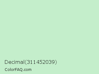 Decimal 311452039 Color is a very light green color and the nearest color is Surf Crest #cfe5d2. Hex code #c4eecb and RGB value is rgb(196,238,203). In RGB color space, this color is composed of 77% red, 93% green, 80% blue, In CMYK color space, this color is composed of 18% cyan, 0% magenta, 15% yellow , 7% black , In HSL color space, this color has a hue angle of 130° , 55% saturation and 85% lightness.