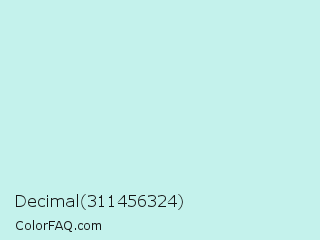 Decimal 311456324 Color is a very light cyan color and the nearest color is Mint Tulip #c4f4eb. Hex code #c4f2ec and RGB value is rgb(196,242,236). In RGB color space, this color is composed of 77% red, 95% green, 93% blue, In CMYK color space, this color is composed of 19% cyan, 0% magenta, 2% yellow , 5% black , In HSL color space, this color has a hue angle of 172° , 64% saturation and 86% lightness.