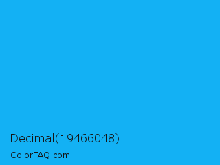 Decimal 19466048 Color is a normal blue color and the nearest color is Spiro Disco Ball #0fc0fc. Hex code #13b1f4 and RGB value is rgb(19,177,244). In RGB color space, this color is composed of 7% red, 69% green, 96% blue, In CMYK color space, this color is composed of 92% cyan, 27% magenta, 0% yellow , 4% black , In HSL color space, this color has a hue angle of 198° , 91% saturation and 52% lightness.